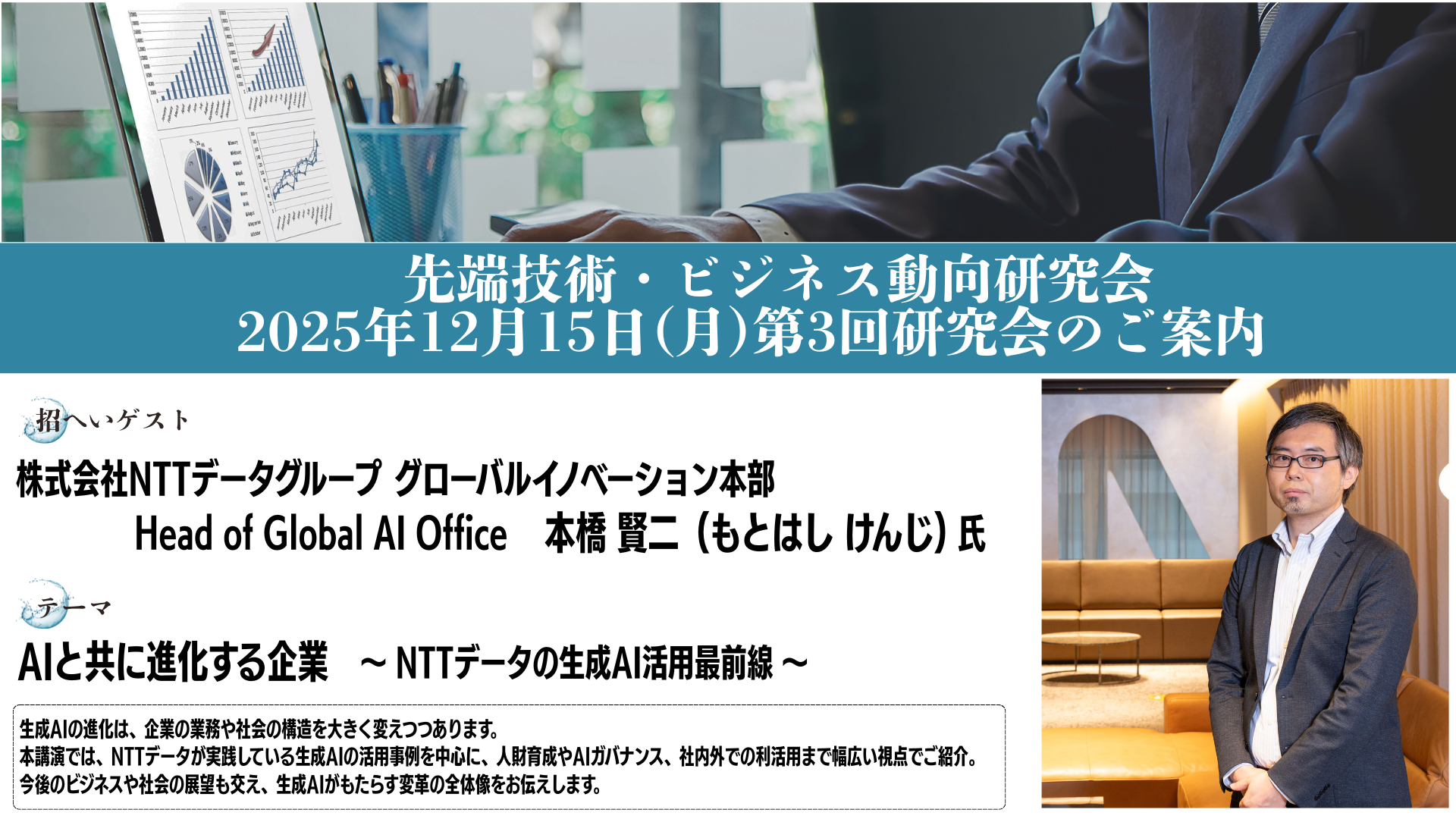 [先端技術・ビジネス動向研究会] 第3回研究会 12月15日(月)